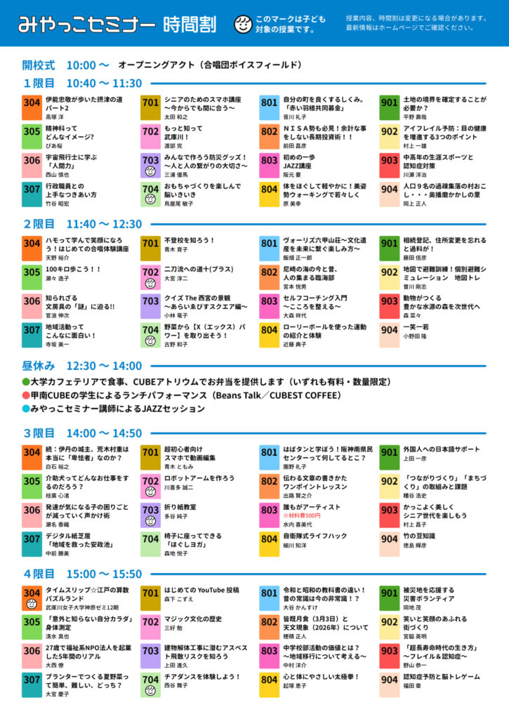 | 会場 | 甲南大学CUBE(西宮キャンパス) (阪急西宮北口駅徒歩3分) ※駐車場・駐輪場はございません。公共交通機関でお越しください。 |